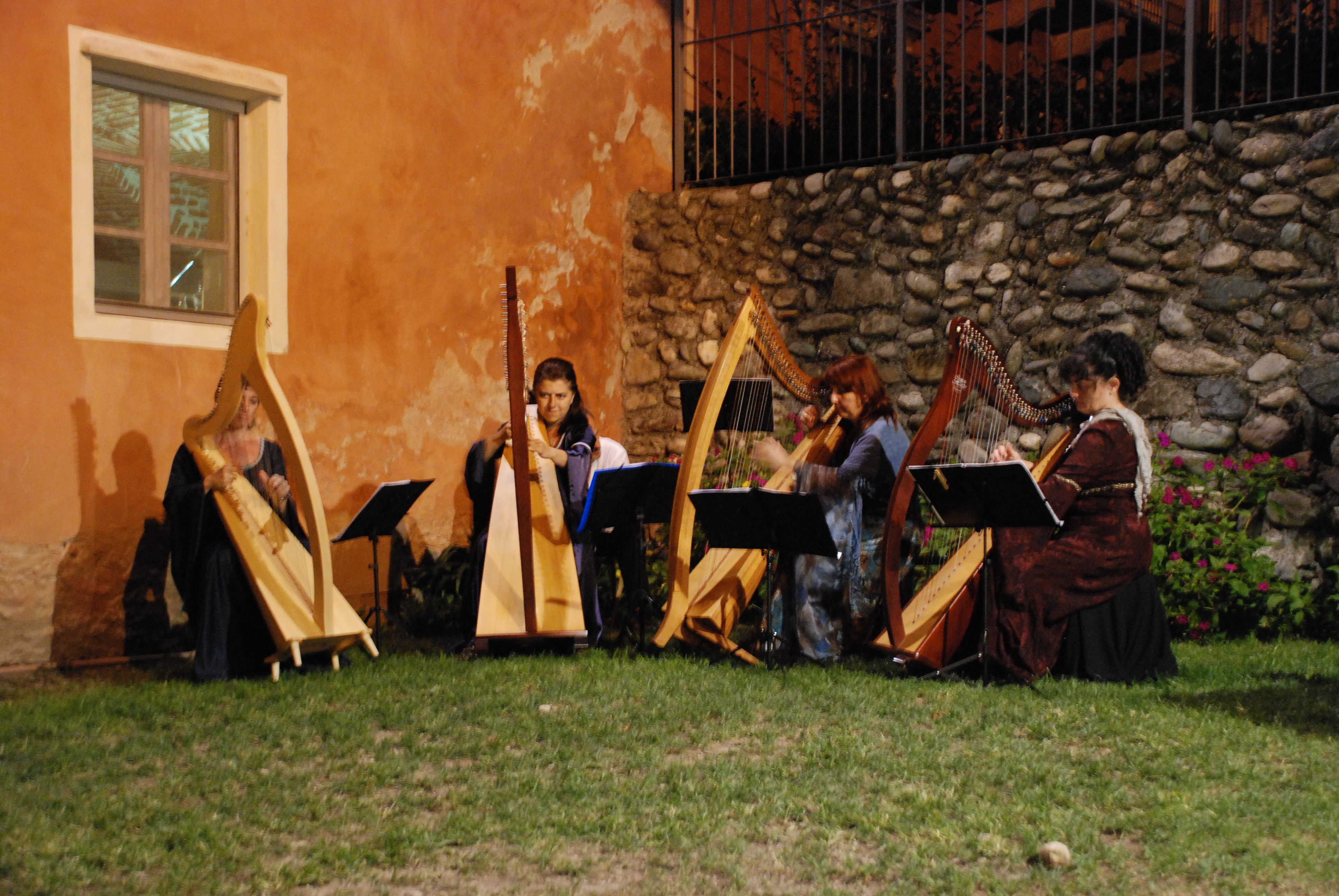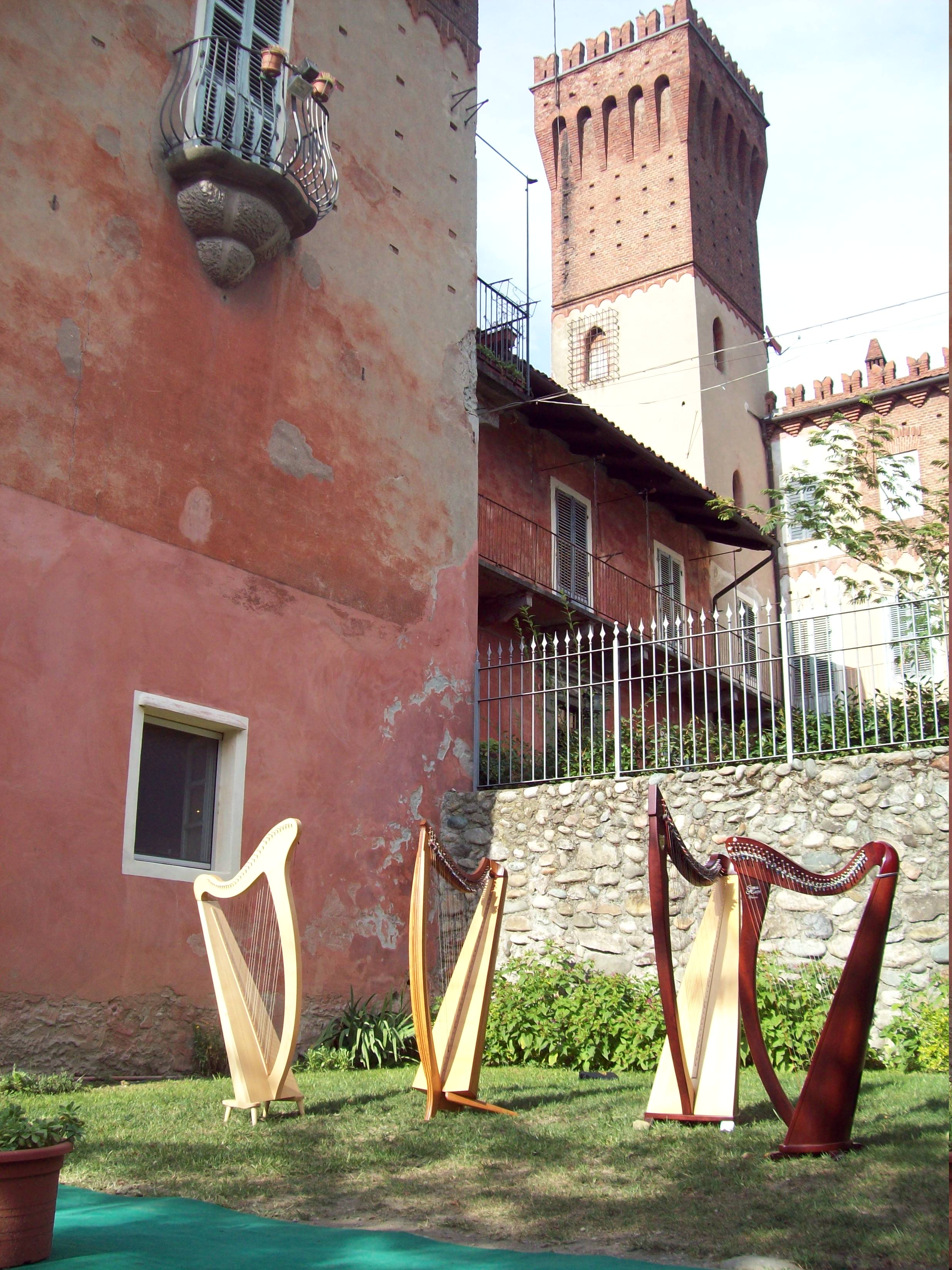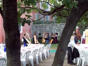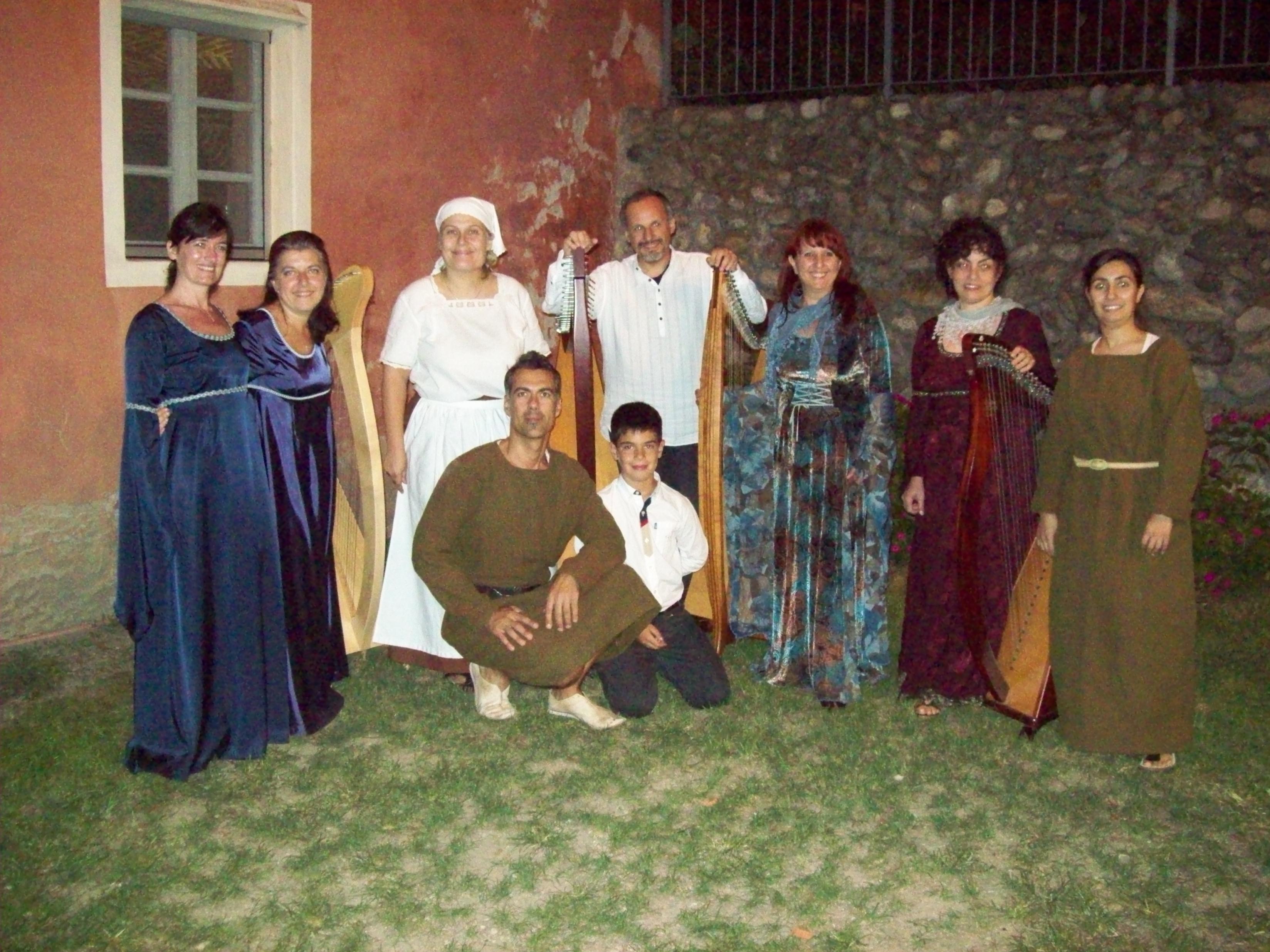 Abbiamo suonato nella corte del Castello: sabato sera, per il concerto “Arpe e incanti” proposto al pubblico come un viaggio musicale tra storie di dame e condottieri, raccontando e condividendo storie e aneddoti del tempo antico e della tradizione europea; domenica sera durante la cena medievale.