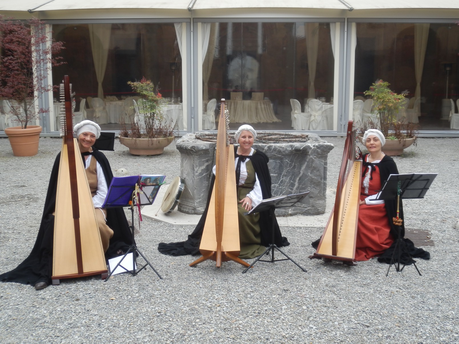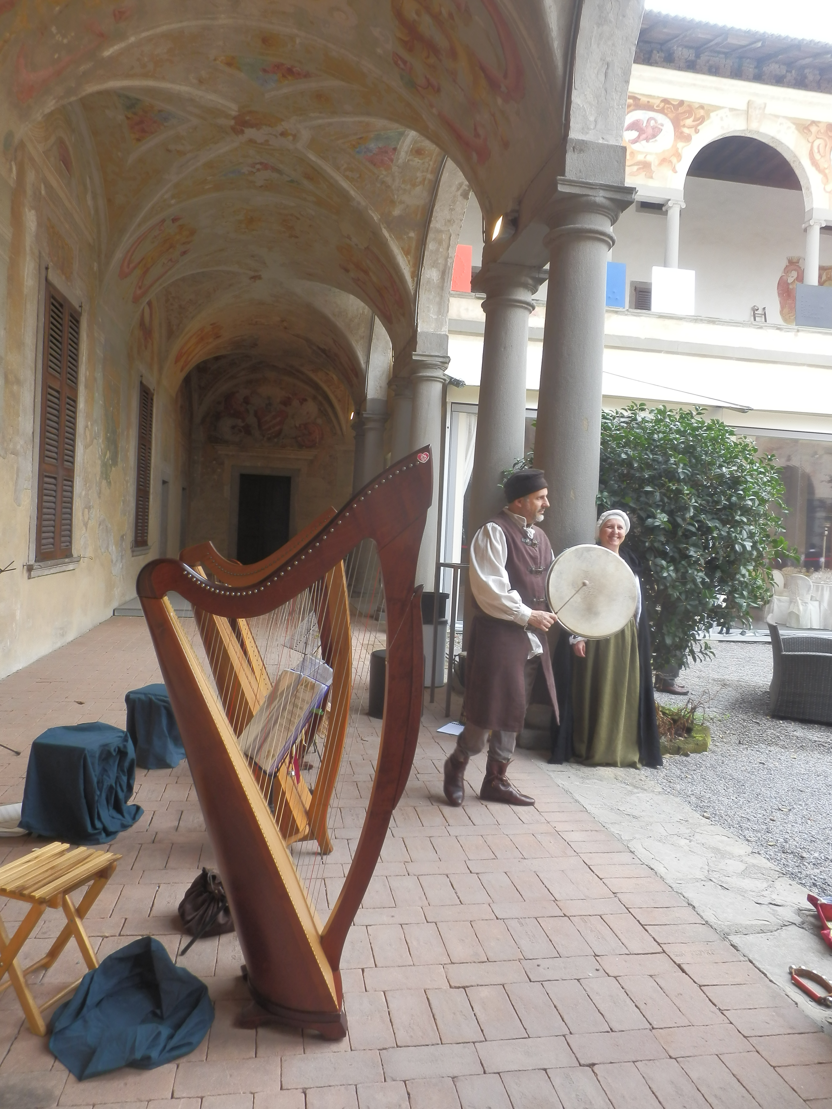 Durante la visita alla mostra e durante il rinfresco offerto per l’inaugurazione abbiamo accompagnato gli ospiti con danze e ballate medioevali dal nostro repertorio per arpe celtiche e voci.