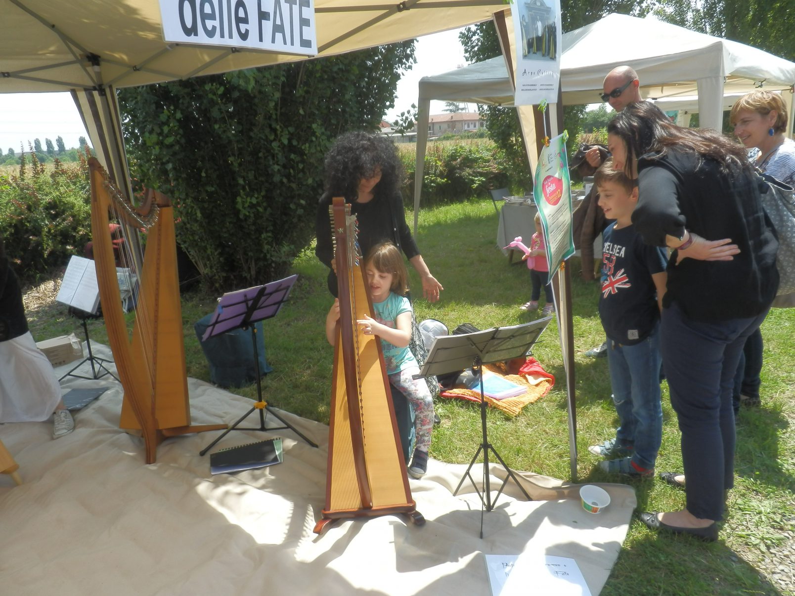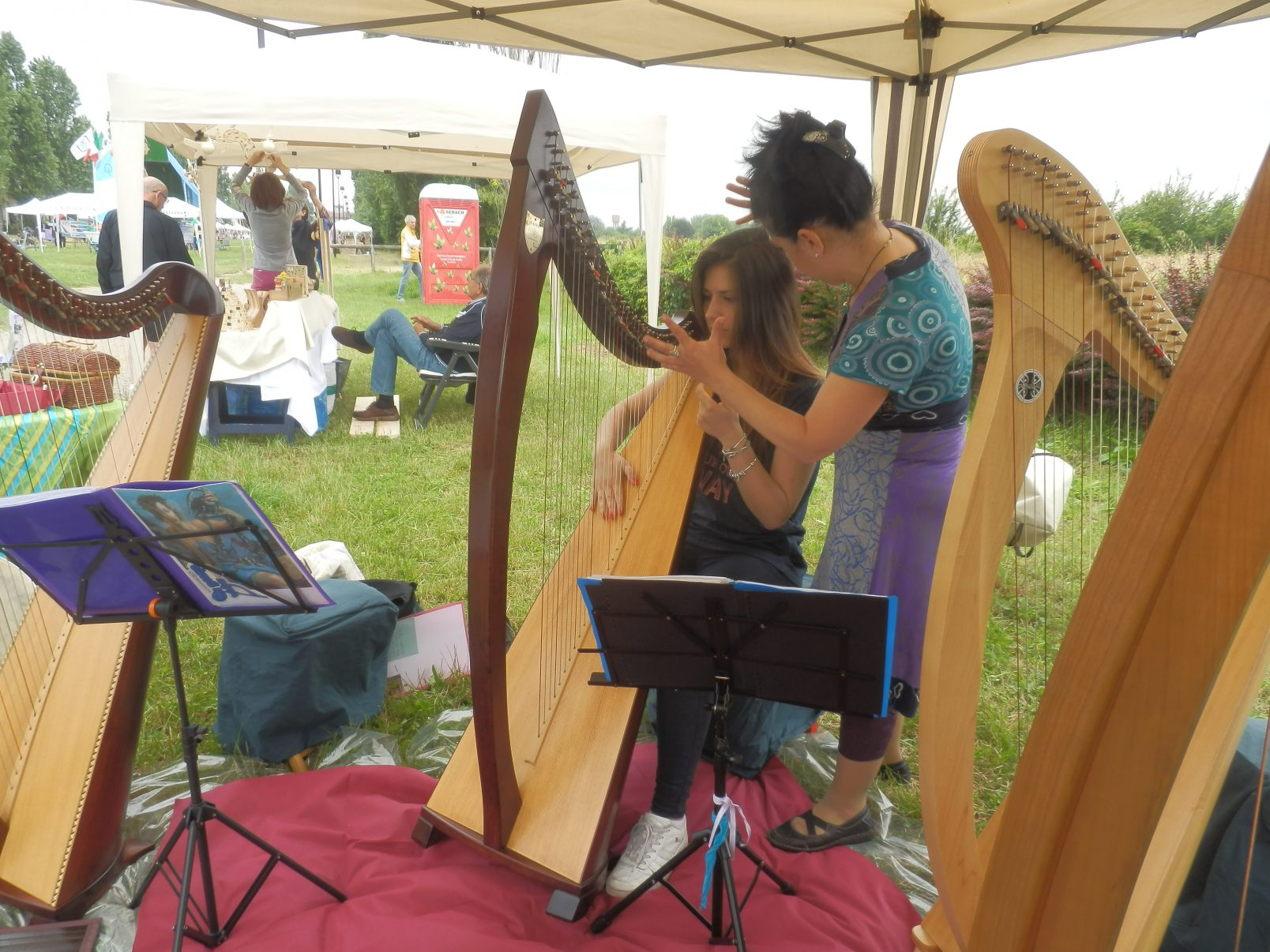 Abbiamo allestito il nostro stand e incontrato tante persone che si sono fermate ad ascoltare e altre che si sono sedute accanto a noi per provare a far vibrare le corde delle arpe e conoscere da vicino questo strumento.