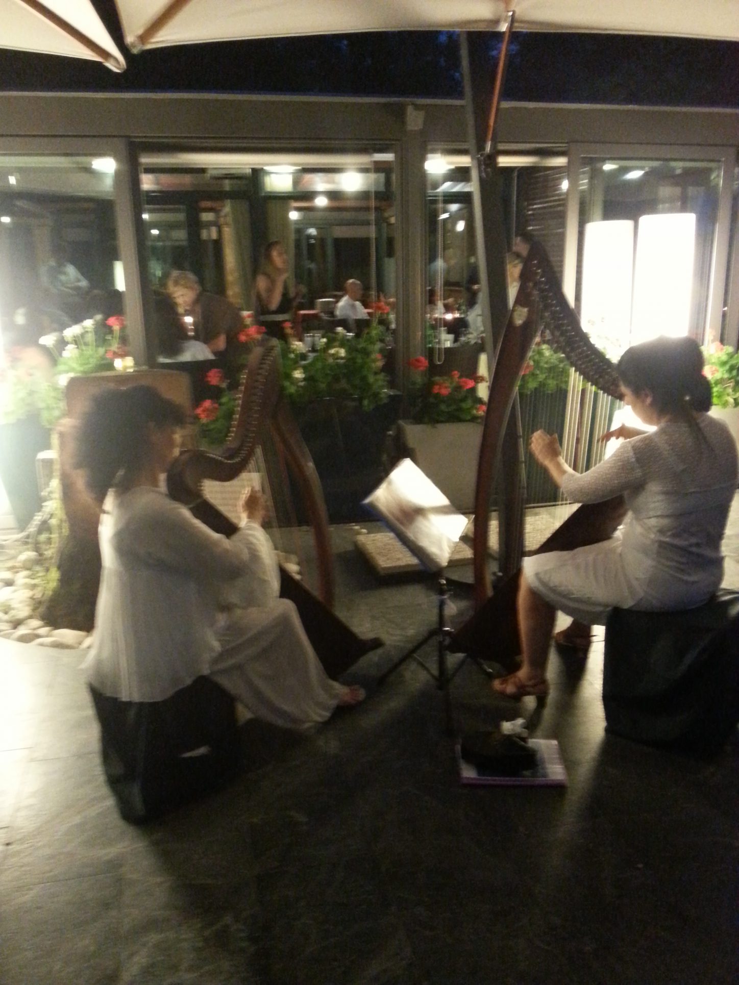In un’atmosfera festosa, ma molto intima e familiare, circondati dagli alberi dello splendido parco, abbiamo suonato dall’aperitivo …..