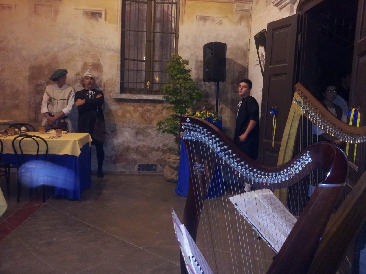 Aperitivo in giardino e Grande Banchetto nel salone, tutto curato in ogni dettaglio dalla Compagnia delle Torri: acrobati, musici, giullari, cavalli, figuranti … e poi il menu presentato e spiegato ad ogni portata …
