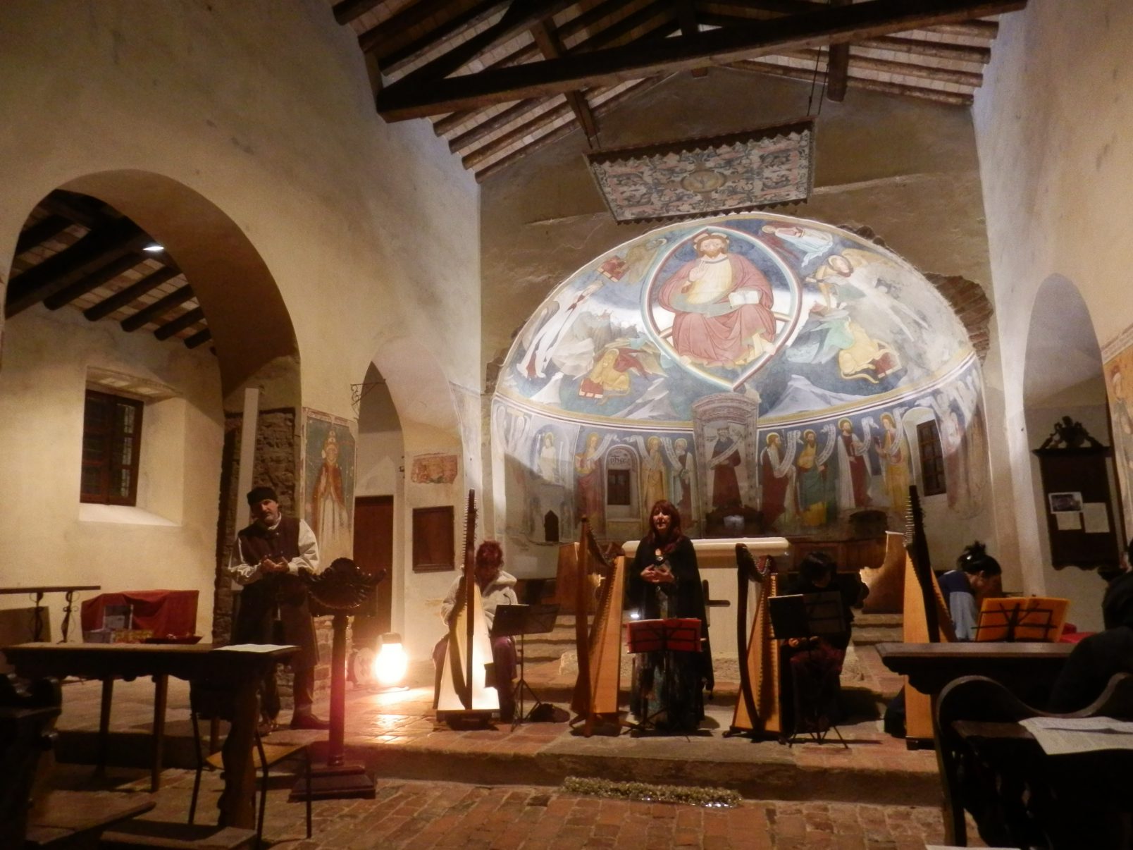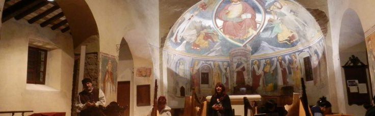 Mi sono persa per strada nel traffico e nella nebbia e ho avuto paura di smarrirmi, ma sono arrivata a Volpedo e le mie compagne mi hanno aspettato; il suono degli applausi simpatico delle mani inguantate delle persone in ascolto coperte con sciarpe, berretti e piumini … avevo le dita viola e mi battevano i denti verso la parte finale del concerto ma … in cambio, attraverso la Musica delle Arpe, ci siamo donati l’uno all’altro la Luce dei nostri cuori che ci accompagnerà con calore nel Cammino della Vita….