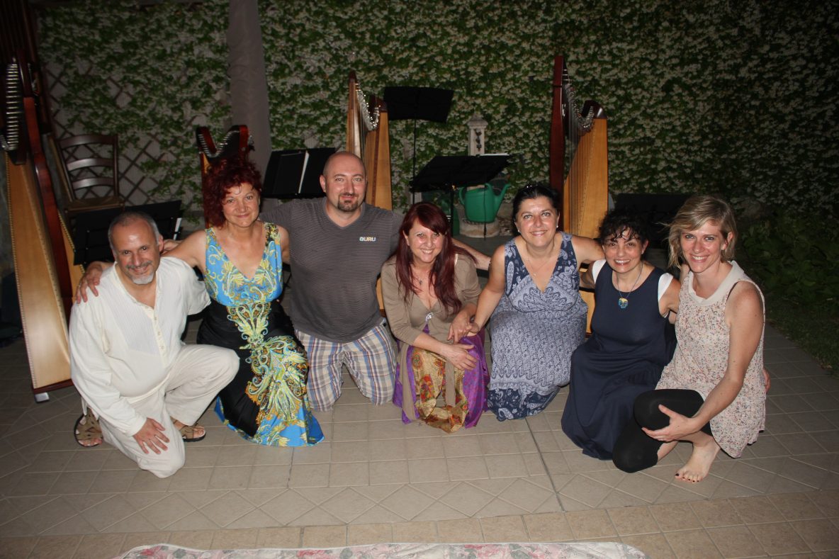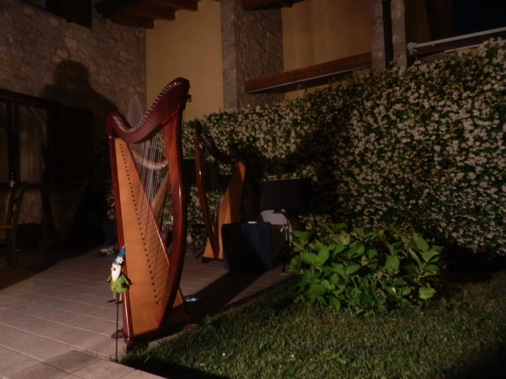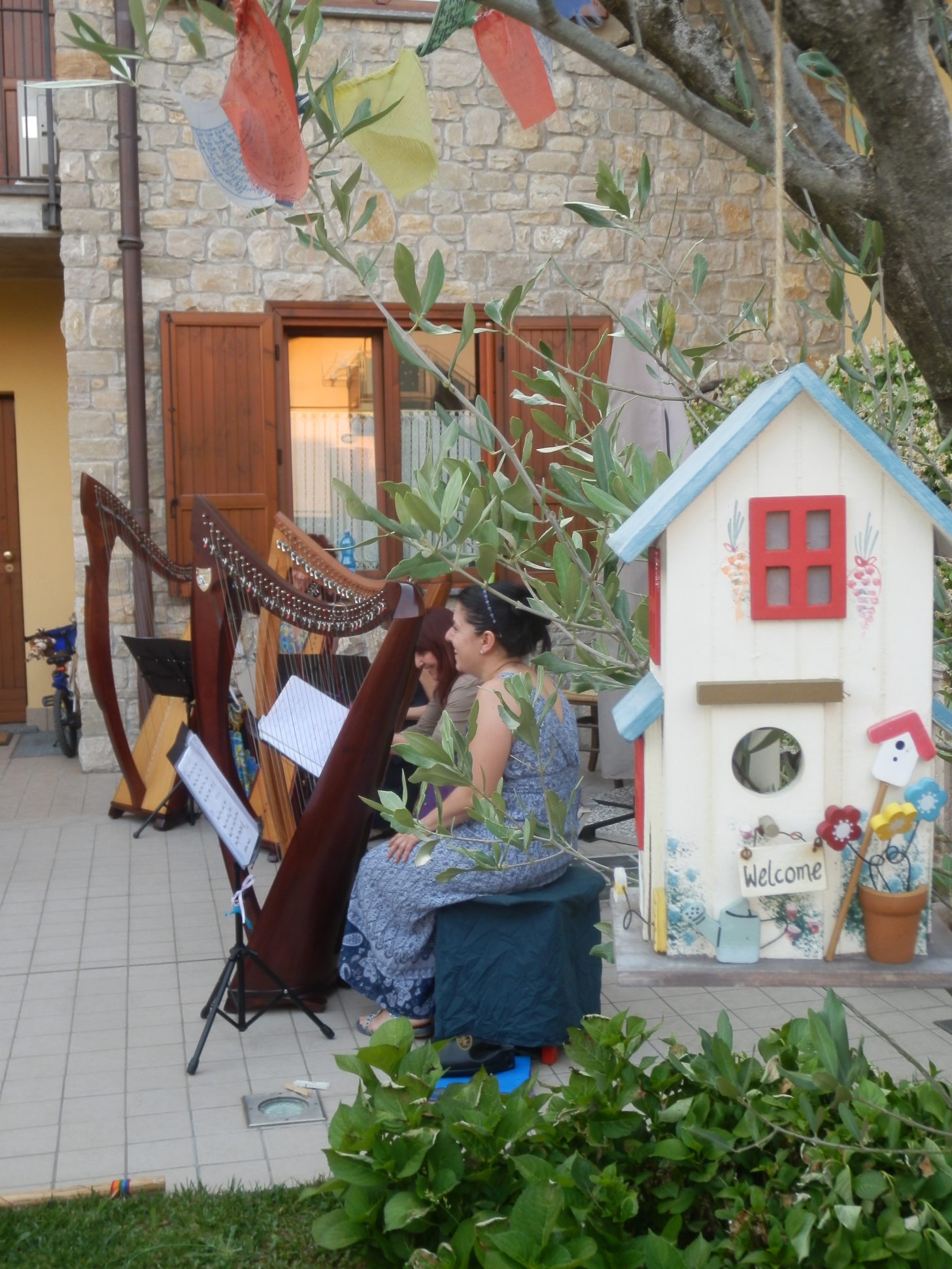 E Fabio, il festeggiato, che all’ultimo momento aveva intuito che ci fosse qualcosa ad attenderlo … tutto si aspettava tranne che un concerto di arpe e fate e folletti nel  giardino di casa!