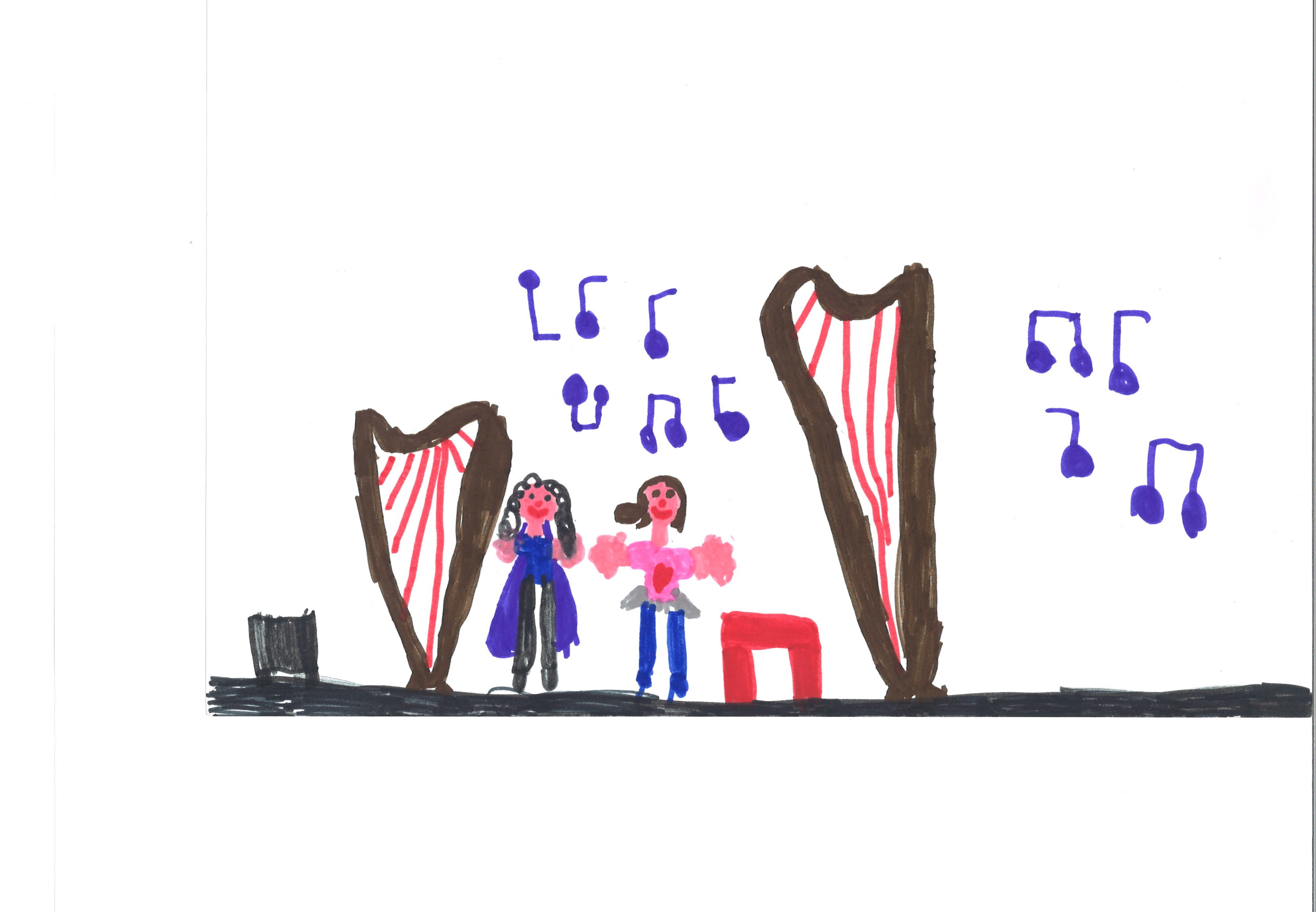 “I bambini di Fir” è un richiamo al nostro ultimo CD Fir radici nella musica: abbiamo chiesto ai bambini che ci hanno ascoltato di chiudere gli occhi e lasciarsi portare dalla musica delle arpe; abbiamo raccontato che Fir significa abete ed é il simbolo della ricerca della vita. E loro ci hanno donato decine di disegni, eseguiti in classe subito dopo l’incontro con noi; e coi disegni ci hanno regalato la loro contagiosa fantasia e il loro entusiasmo.