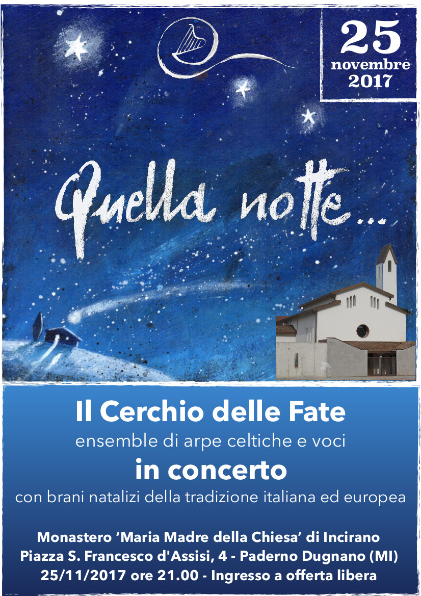 Venite a scoprirli con la nostra musica: carole e danze del tempo di Natale arrangiate da Patrizia Borromeo per ensemble di arpe celtiche e voci.