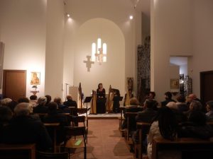 La sera del 25 novembre, dopo aver lasciato gli ospiti dell’ospedale di Garbagnate, ci siamo trasferiti con arpe e bagagli … presso il monastero di Incirano, a Paderno Dugnano (MI) per il nostro primo concerto in tempo d’avvento.