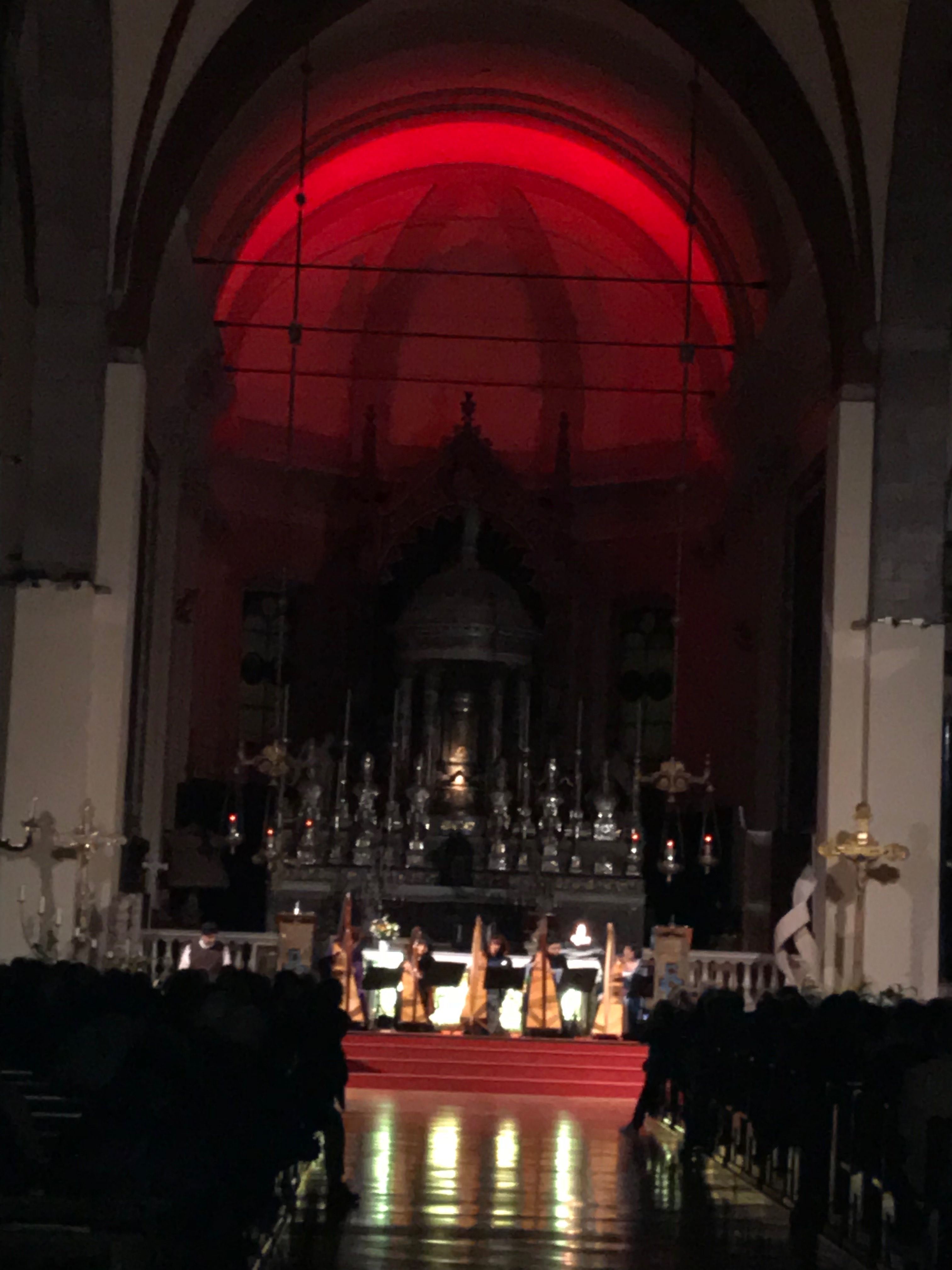 Maestosa e resa ancor più suggestiva dal gioco di luci, la chiesa si è riempita velocemente e il nostro racconto di Quella Notte, come un viaggio musicale alla riscoperta delle radici comuni di un Natale universale, si è arricchito delle immagini familiari del Natale tradizionale.