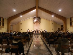 Don Angelo, il parroco di San Carlo, che ci ha accolti con tanto affetto e ha tappezzato la chiesa con la nostra locandina, rendendo visibile a tutti il cielo stellato di Don Oiche.