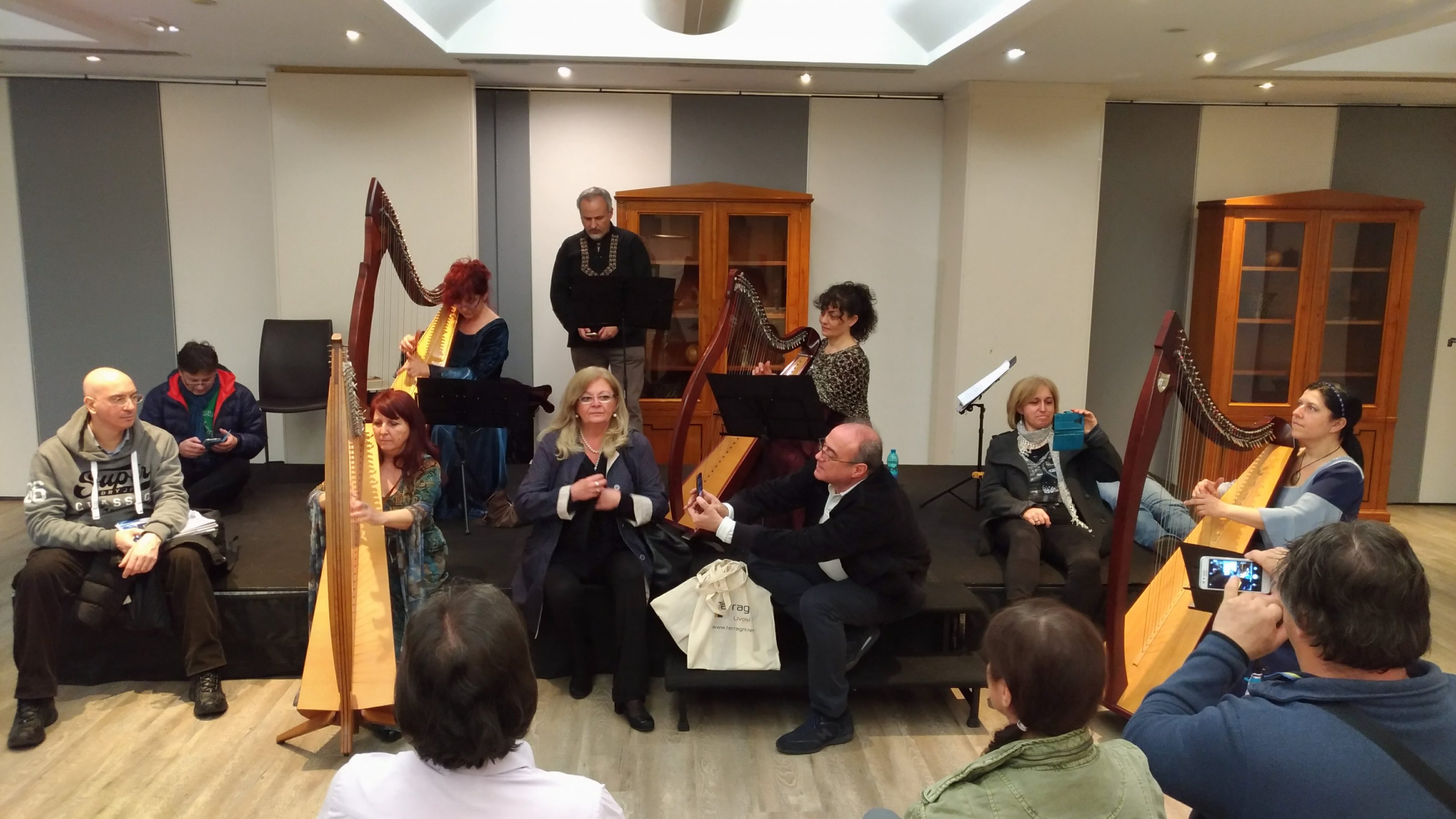 Abbiamo proposto brani del nostro repertorio tratti dai nostri tre CD, registrati in tre diverse sale di incisione; sfumature di suono diverse per la diversità dello stile dei brani – danze, ballate, marce, canti d’osteria, e per le diverse caratteristiche di ciascuna arpa – tipo di legno, corde, ampiezza della cassa armonica, nonché per il diverso stile personale di ogni arpista.