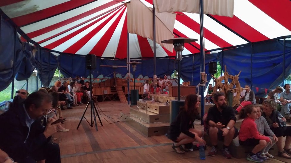 Quest’anno abbiamo partecipato anche noi portando la nostra musica e le nostre lanterne nello spazio circo e …sorpresa: l’interno dello spazio circo è interamente di legno ed è concepito come il ponte di un veliero!