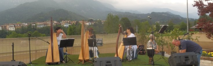 Il tecnico del suono, Lorenzo, è stato davvero un’ottima spalla e ha saputo riconoscere la personalità di ogni arpa e valorizzare un suono così delicato e avvolgente come quello delle nostre tre diverse arpe celtiche.