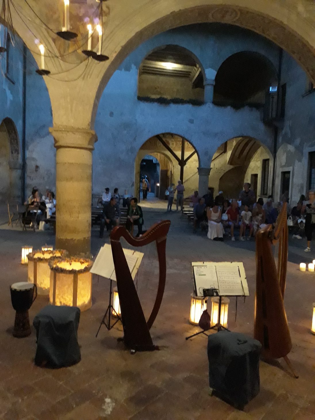 Un ringraziamento particolare a Giampietro Sala dell’associazione Maluspagus e Linda Ottini (responsabile eventi Castello di Malpaga) che hanno curato il prezioso allestimento del chiostro per il nostro concerto d’arpe.