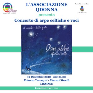 L’ Associazione di promozione sociale QDonna, con il patrocinio del comune di Lissone, organizza un concerto presso l’auditorium di palazzo Terragni a Lissone (MB).