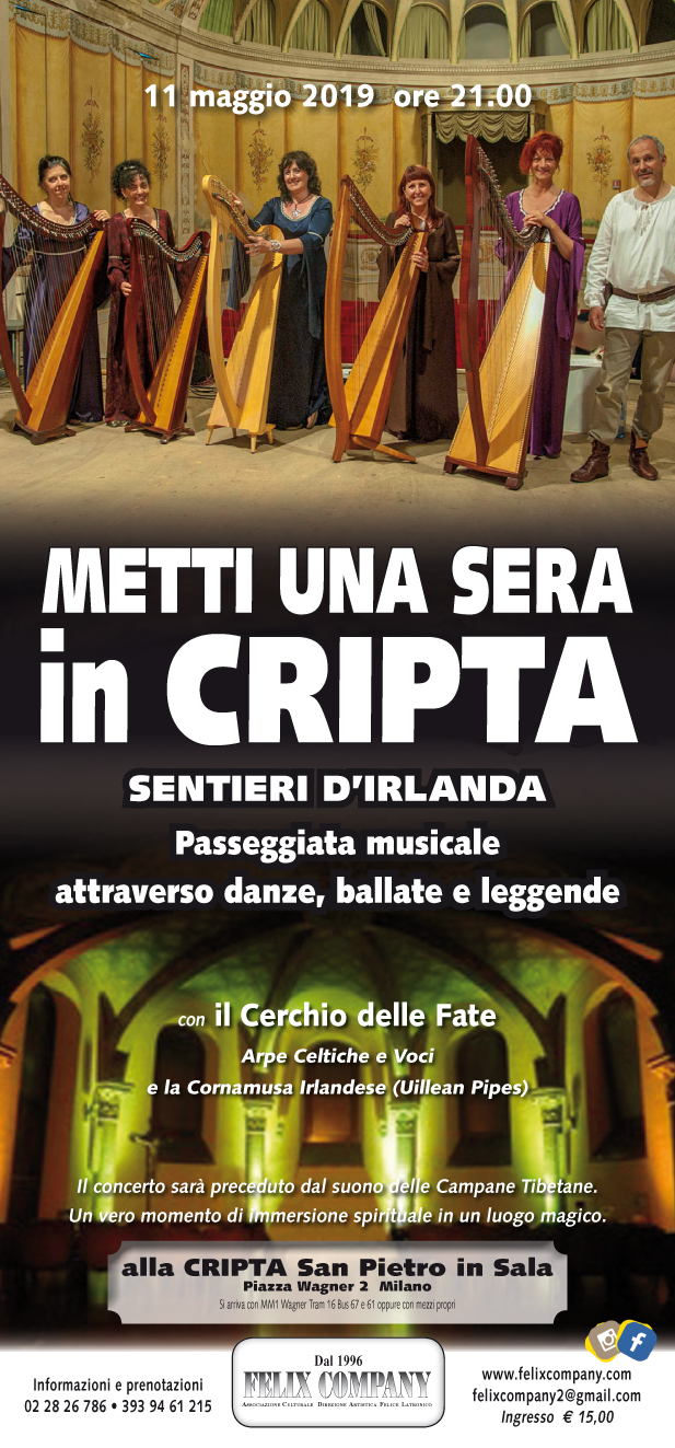 Continua a Milano la Rassegna “Metti una sera in cripta” e ci si ritrova di nuovo a San Pietro in Sala con un suggestivo concerto dedicato all’Irlanda.