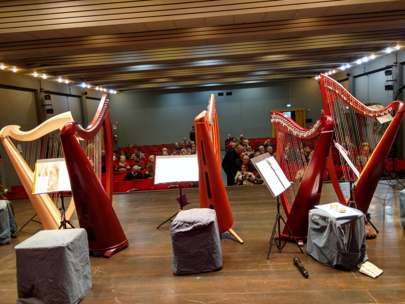 Tra questi, un ringraziamento particolare a Fernanda Villa che ci ha contattato e … in teatro fin dal pomeriggio, ci ha accolto, ha pensato all’allestimento floreale, preparato i tavoli, ci ha persino aiutato a trasportare leggii e sgabelli sul palco!