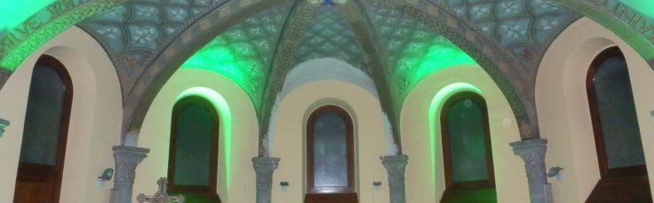 Volte affrescate, colonne di pietra, macchie di umido su alcuni angoli dei muri a testimoniare la fragilità di questo luogo antico e poco visitato.
