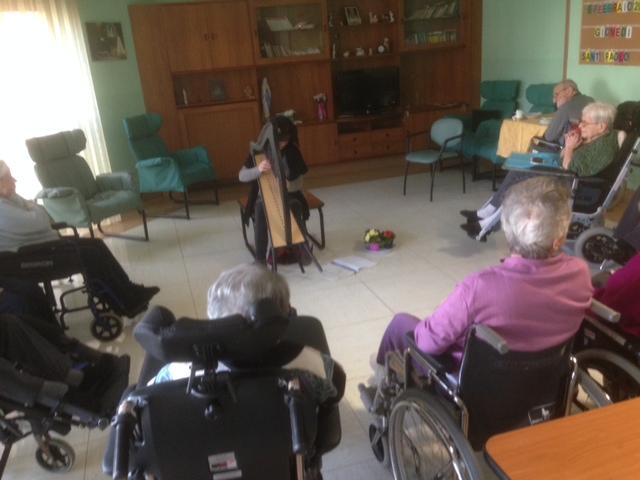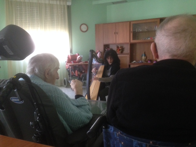 Un’arpa piccola, leggera e maneggevole mi ha permesso di portare la nostra musica (la musica del Cerchio delle Fate) in una RSA di Lissone per diversi anni: era un appuntamento fisso, due pomeriggi al mese.