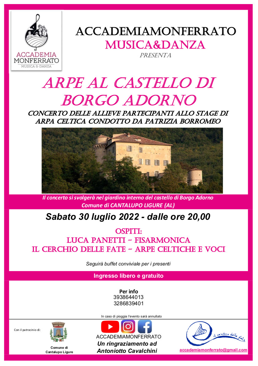 La serata è organizzata da Accademia Monferrato con il patrocinio del comune di Cantalupo Ligure (AL).