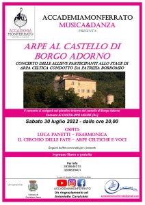 Potrete ascoltare le arpiste allieve dello stage di arpa celtica con Patrizia Borromeo, la fisarmonica di Luca Panetti, e le arpe del Cerchio delle Fate!