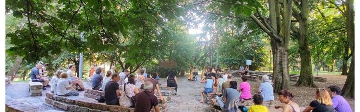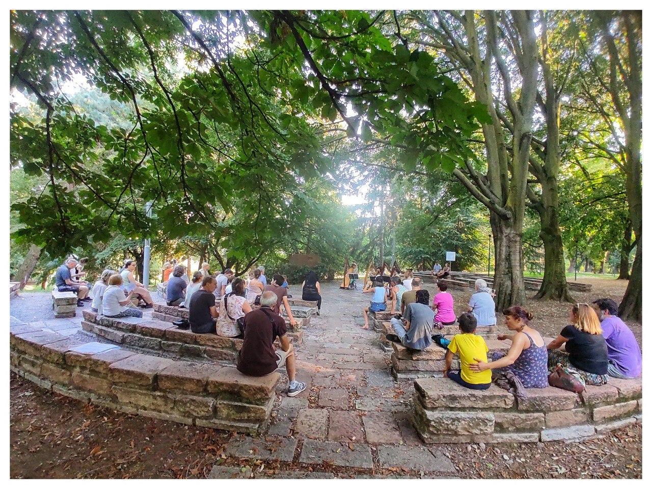 All’ombra dei frondosi alberi dell’ Anfiteatro Ulianova Radice per il FESTIVAL ESTATE A CASVA…abbiamo sfidato il caldo, le zanzare, le rumorosissime cicale e abbiamo portato la nostra musica al Parco del Monte Stella presso il giardino dei Giusti.