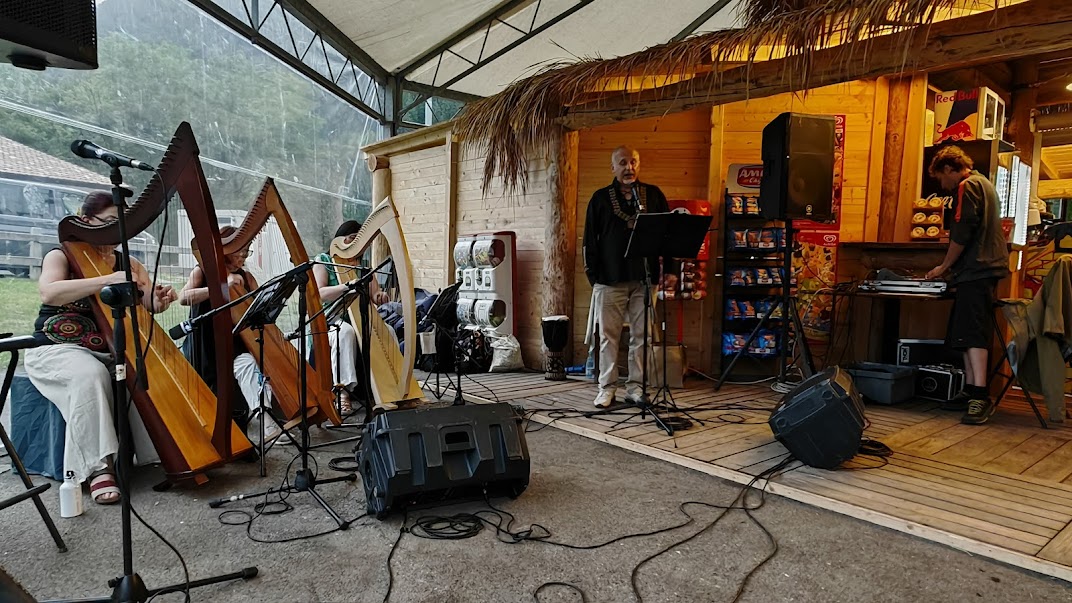 Davide, il tecnico del suono, ci ha seguiti con attenzione e professionalità, con tutta la delicatezza e la pazienza necessarie per amplificare strumenti così sensibili …soprattutto nel bel mezzo di un forte temporale con vento, tuoni e scrosci di pioggia! Grazie Davide!!