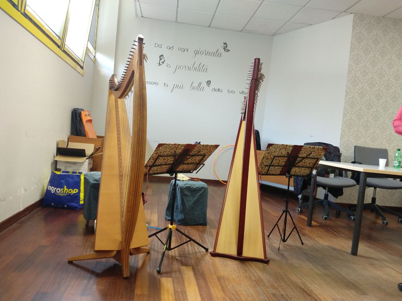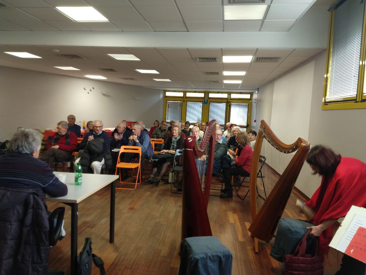 Mercoledì mattina abbiamo portato le nostre arpe ad allietare la festa privata di una Associazione di Monza, presso la Sala Crespi del centro comunale Liberthub di Viale Libertà.