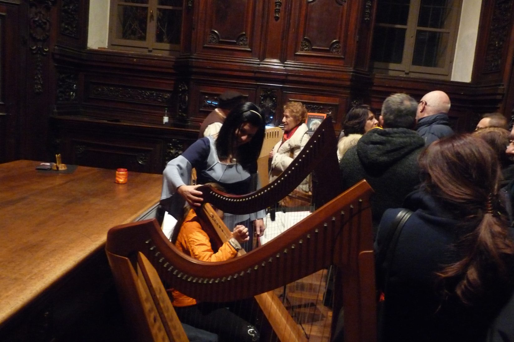 Era l’ora di cena e per le strade di Carona non si vedeva nessuno: faceva davvero molto freddo … chissà chi sarebbe uscito dal calduccio di casa per un concerto d’arpe celtiche in parrocchia ….